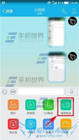 1)打开手机QQ,进入聊天窗口,点击【+】,选择【视频通话】;(如下图)