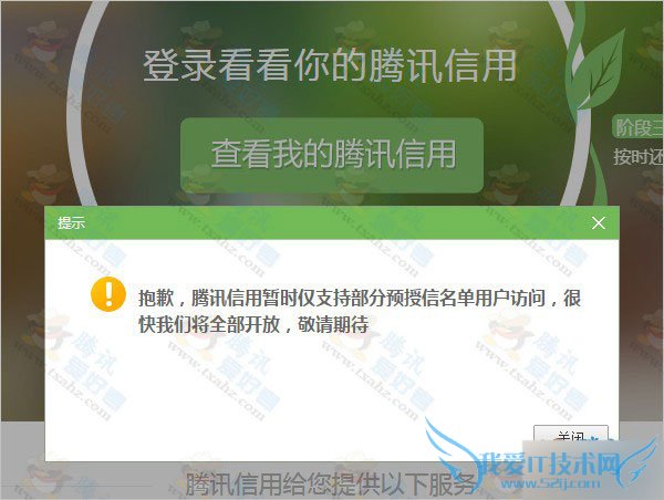 登录QQ号后,点击查看我的腾讯信用出现如下图提示: