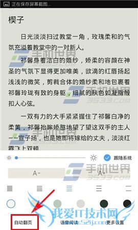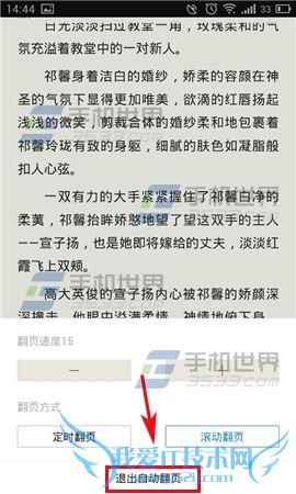 3)接着点击【自动翻页】即可。如果要关闭自动翻页点击屏幕中间跳出功能栏点击【退出自动翻页】即可。小伙伴可以根据需要设置定时翻页和滚动翻页。(如下图)