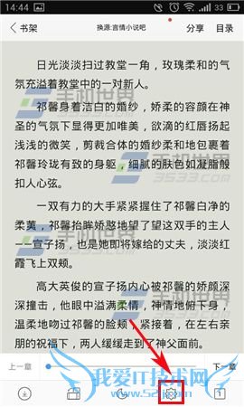 2)找到你要阅读的【小说】,点击进入阅读,接着点击【屏幕中间】,跳出功能栏后点击下方【设置】图标。