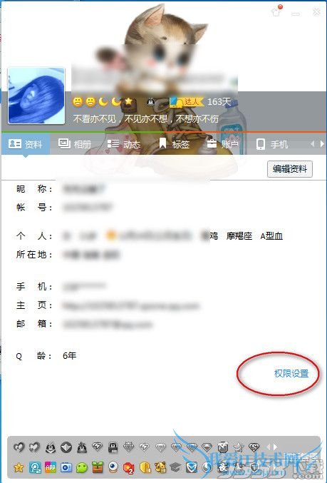2、进入“个人资料”中,我们点击右下角“权限设置”