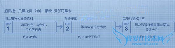 最后我们等待中信银行完成审批即可,一般1-10个工作日可以完成,申请成功后,我们就可以到中信银行去免费领取卡片了,具体请见下图的QQ彩贝中信信用卡办理流程: