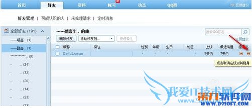 当你鼠标移到此处时候,会出现两个图标。第一个图标就是:设置在线对其隐身。