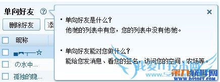 1.单项好友就是:她的列表有你,你的列表没他,很好理解。点击名字就可以查看资料了。