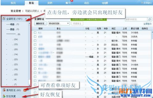 这边插曲下:在分组的下面还有两个好东西:1.单向好友2.好友恢复。这两个等到最后面讲。