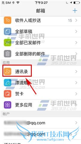 1)打开手机QQ邮箱进入应用后点击【通讯录】,接着点击右上角【头像】。(如下图)