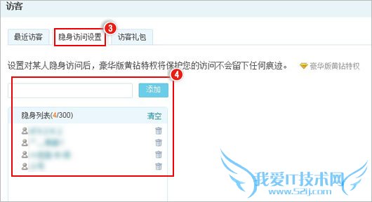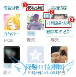 方法二:登录QQ空间个人中心,选择“我看过谁”,鼠标移至相关记录的删除按钮,点击“对其隐身访问”即可。
