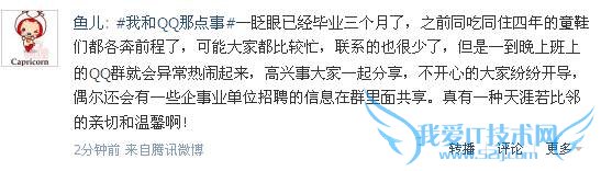 QQ产品团队微博活动#我和QQ那点事#推出至今仍热度不减,网友们纷纷和大家分享生活中与QQ从相识到结缘的故事,这些QQ故事或感动、或爆笑……常带给我们无限惊喜。这回,当QQ走进校园,又将“撞”出哪样的火花呢?相信大家都按捺不住了,纷纷道来吧: