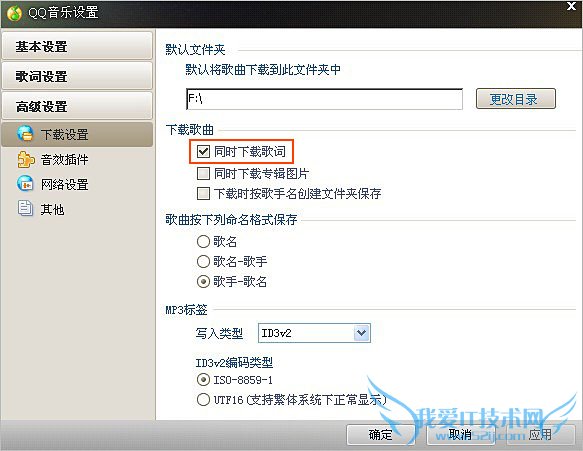 3、将“同时下载歌词”前的勾选上,“确认”即可。(相关内容:QQ音乐如何禁止下载歌曲时自动下载歌词?)