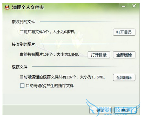 第四步:系统自动搜索完之后 你点逐个点两个全部删除。一个删除的是图片,一个删除的是图片的缓存。如果不经常做系统,你会发现图片和缓存数量很多,可能是几百几千甚至上万,放心,这些都是垃圾,全部予以删除。删除完,你的电脑更干净了,也更轻松了,你的电脑和QQ 不仅会更健康,还会速度更快。同时不要担心你保存的那些或浪漫纯情或幽默可爱搞笑的qq表情图片是不是会被删除,依然给你一个定心丸,放心吧,它们不会被删除,因为它们不在这,而在另一个地方(很多朋友重做系统后,发现原来辛辛苦苦积攒很久深爱的QQ表情图片一张也没有了,依然告诉你,别担心,下一篇日志我教你轻松找到并恢复它们,不过这篇不偏离主题,恕依然暂不赘述)