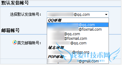 2、在默认发信账号的下拉框中选择您中意的发信账号。