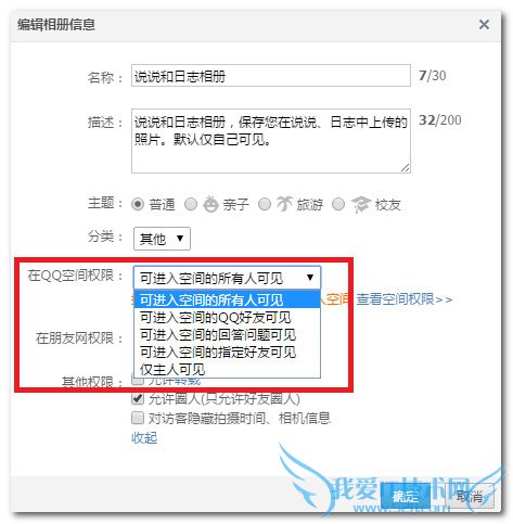 2、将相册的"在QQ空间权限"项暂时更改为对所有人可见