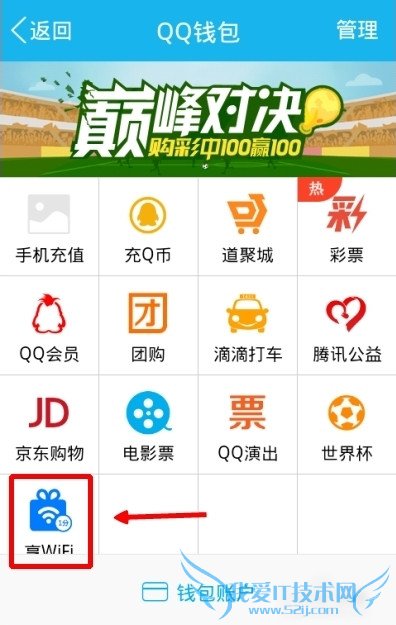 进入我的QQ钱包后,在钱包最下方点击--->【WI-FI】图标
