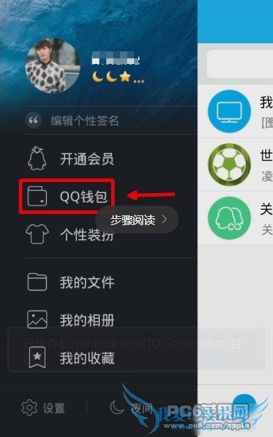 在左侧弹出的版面上点击进入--->【QQ钱包】
