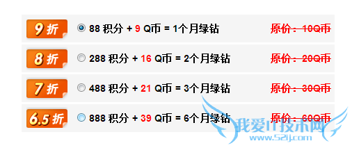 用积分兑换QQ绿钻,可享受优惠折扣,最多低至6.5折,做多可以省21Q币,算一算还是挺不错的!下面小编为大家计算一下折扣的方式: