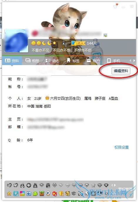 2、然后点击自己的QQ网名进入资料设置点击“编辑资料”。