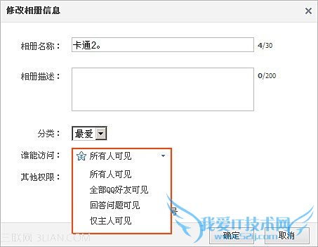 三、之后会弹出修改相册信息的对话框,您可以根据您的需求设置相册访问权限。