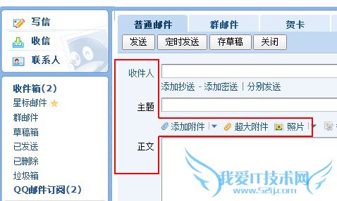 步骤二、如果需要发送一些文件的话,当然可以在主题下面有【添加附件】或者【超大附件】上添加即可。如图所示: