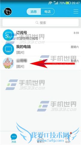 1)打开手机QQ,在【消息】页面找到要标记未读的消息,向左滑动;(如下图)