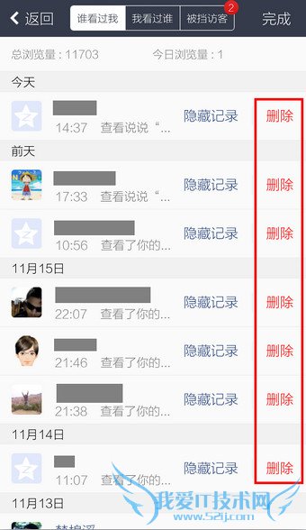 4.这里便是空间访问记录,点击右上角的【编辑】