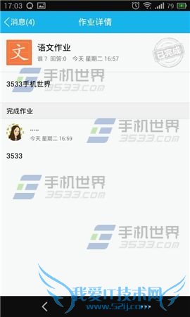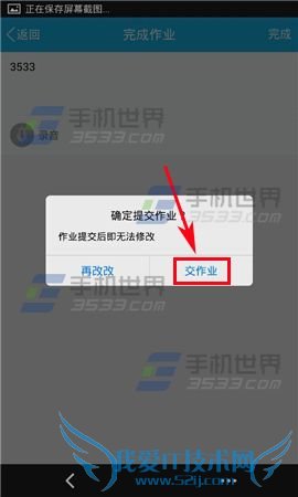 3)在提示框中点击【交作业】即可。将显示已完成。(如下图)