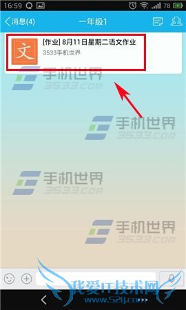 1)打开你要完成作业的【师生群】,点击布置好的【作业】。(如下图)