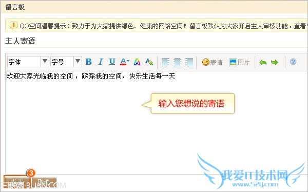 QQ空间留言板的主人寄语吧!操作步骤如下: