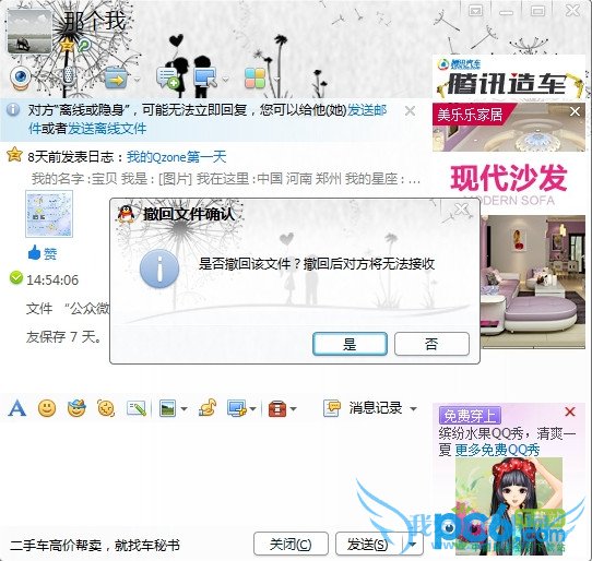 5. 如果对方真是离线状态,我们撤回该文件时,会提示我们“撤回成功,对方不会收到该文件。”
