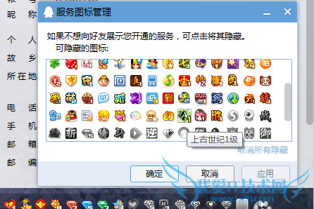 2、打开自己的QQ面板,点开自己的资料,打开图标管理选项,找到上古世纪图标,点击隐藏,即可隐藏相应的图标!