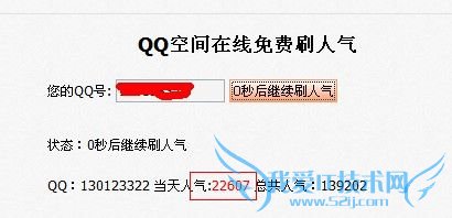 然后在把滚动条拖到上面,把在线刷人气的文本框里面输入你要刷的QQ号,也是下面的那个号码,然后点击开始免费刷QQ空间人气。