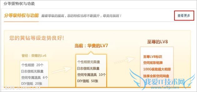 二、在“特权与功能”的下方查看“分等级特权与功能”点击“查看更多”。如图: