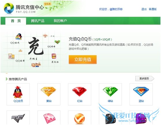 轻松版首页以Q点Q币以及QQ会员、黄钻等腾讯热门充值业务为主,可以满足一般用户的充值需求。