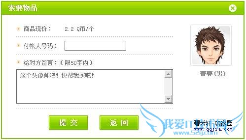 在QQ秀商城可以有两种方式进行索要:单件索要和整套索要。