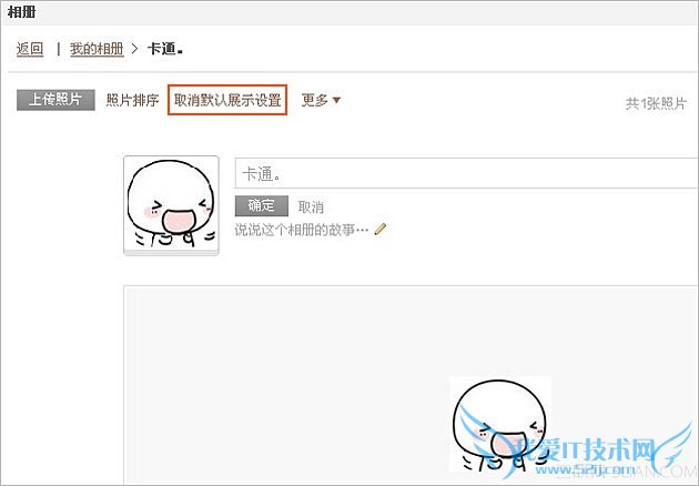 第二步:打开设为照片墙相册后,点击“取消默认展示设置”;