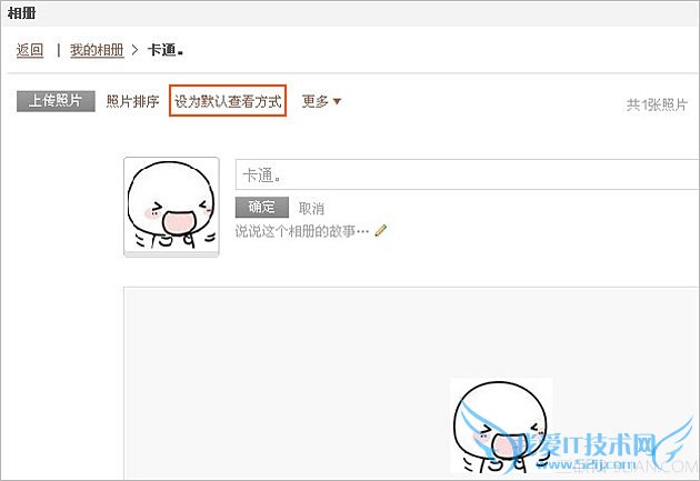 若您把相册已经设置了默认照片墙方式查看,可根据以下方式操作: