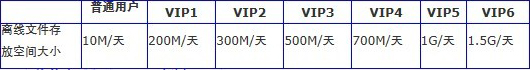 2、系统为不同等级的会员用户每天分配不同的空间用于存放离线文件,会员用户在成长旅途里可以不断享受到成长的乐趣,空间大小与等级对应关系如图所示: