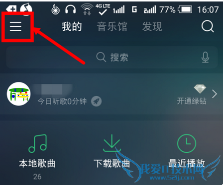 2、进入手机QQ音乐主界面之后,点击左上角的菜单图标(三根横线的图标)。