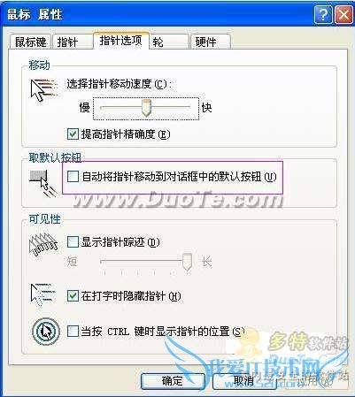 首先在“控制面板”中打开“鼠标”设置,打开“指针选项”选项卡,勾选“自动将指针移动到对话框中的默认按钮”选项,“确定”退出。