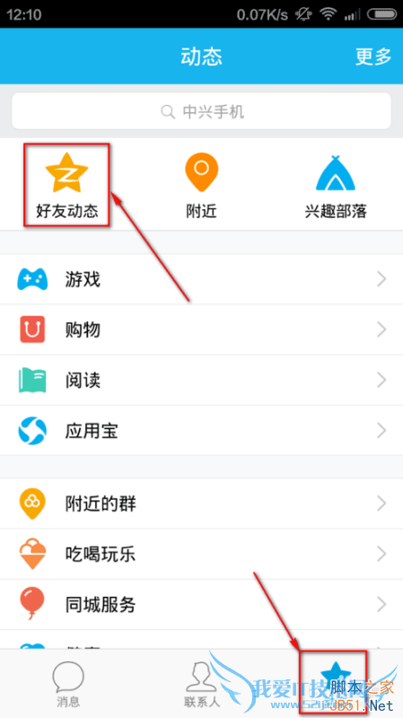 进入手机QQ后,找到下面的”动态“栏,然后点击"好友动态“进入"好友动态“。