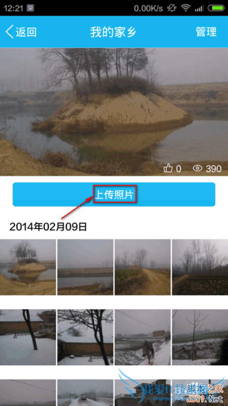我这里给我的家乡传照片,点击“上传照片”。