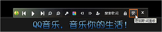2、将鼠标放在桌面歌词上,显示桌面歌词工具栏,点击“返回歌词面板”。