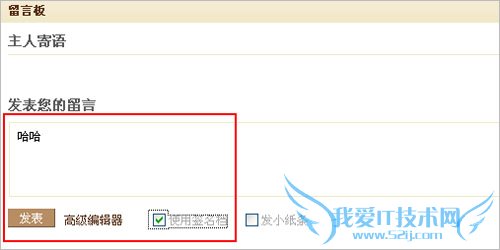 三、当您设置好签名档后,请您进入好友空间,在留言板中写上您想对好友说的话,勾选上使用签名档,点击发表;