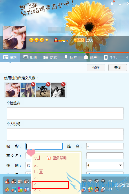 2、进入以后,这个时候就是正常修改昵称,不是直接打空格键哦,而是使用搜狗输入法同时按住v1,然后选择d,即可打出空格, 这样网名就可以留空白啦!如效果图所示: