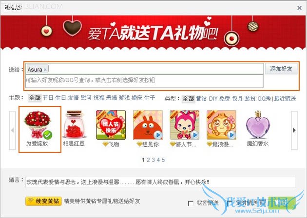 1、可以在左上方的“选择好友”中选择要赠送礼物的对象;