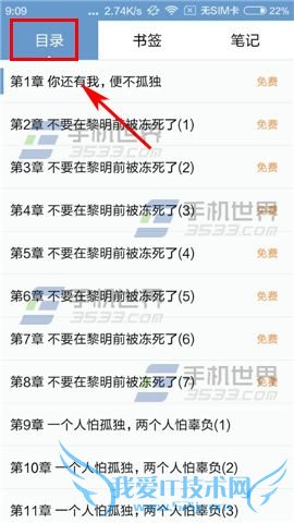 2)在【目录】栏即可查看到该小说的所有目录。(如下图)