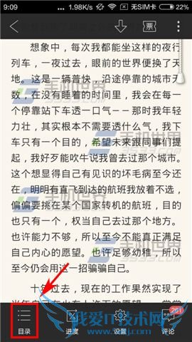 1)打开手机QQ阅读进入应用后找到你要阅读的小说,点击进入阅读页面,【点击小说阅读任意地方一下】,跳出功能栏,点击下方【目录】。(如下图)