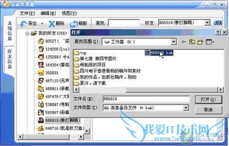 同样,恢复聊天记录也是在消息管理器里面。打开消息管理器,点击“文件→导入”项,弹出“打开”菜单,选择好备份文件以后,点击“打开”按钮,恢复就成功了(如图4)。