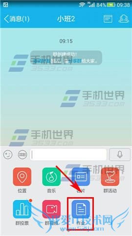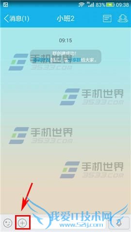 1)打开你要布置作业的师生群,点击进入聊天室,接着点击编辑栏框中【+】。(如下图)