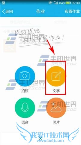 3)接着点击右上角【布置作业】,选择分类如【文字】。(如下图)