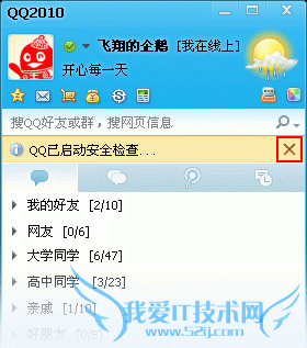 1.当您成功登录后即可在QQ面板上查看QQ安全检查提示,您可通过点击“X”主动关闭提示(如下图);